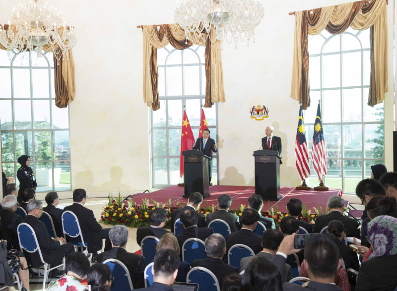 李克强表示,我此行深感中马人民友谊源远流长,高层交往密切,政治互信不断加强,文化相互开放包容,合作前景广阔。中方愿发挥自身优势,参与马南部铁路和马新高铁等基础设施建设,鼓励两国企业扩大相互投资,进一步加强贸易、金融、海洋、教育、防务等领域合作。中方鼓励更多中国公民赴马旅游,增进两国人民了解,欢迎马方在此访期间出台的签证便利措施。