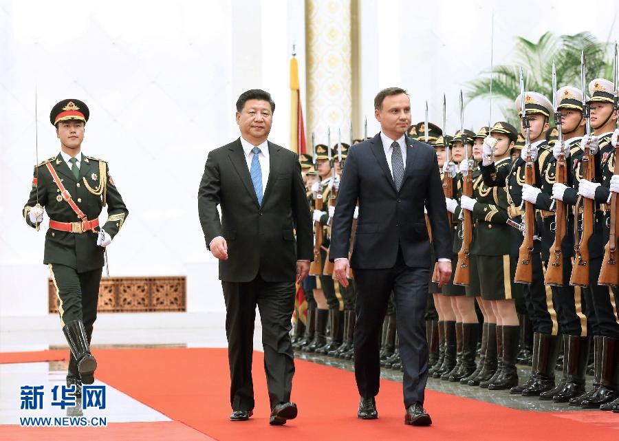 习近平欢迎杜达访华并出席第四次中国-中东欧国家领导人会晤。习近平指出,波兰是最早承认并同新中国建交的国家之一。2011年两国建立战略伙伴关系以来,双边各领域务实合作不断取得新进展。双方要进一步提高政治互信水平,继续保持高层交往,密切政府、立法机构、政党等交流合作,加强在国际事务中的沟通和协调。双方要夯实务实合作基础,加快“一带一路”倡议同波兰国家发展战略对接。中方鼓励有实力的中国企业继续赴波兰开拓市场,欢迎波兰企业来华发展。双方可进一步探讨以波兰为枢纽,规划打造新的物流线,建设辐射中东欧的物流中心。中方愿同波方拓展在金融、装备制造、环保、新能源、信息通讯技术、农业、科技、电子商务、基础设施建设等领域合作。双方要扩大人文交流,加强在旅游、教育、地方、体育等领域合作,增进两国人民相互了解。