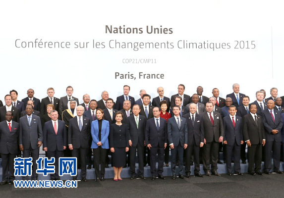11月30日,国家主席习近平在巴黎出席气候变化巴黎大会开幕式并发表题为《携手构建合作共赢、公平合理的气候变化治理机制》的重要讲话。这是与会领导人合影。新华社记者 马占成 摄