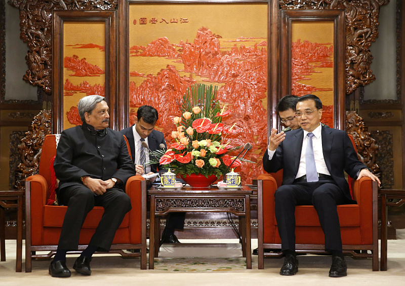 国务院总理李克强4月19日下午在中南海紫光阁会见印度国防部长帕里卡尔。