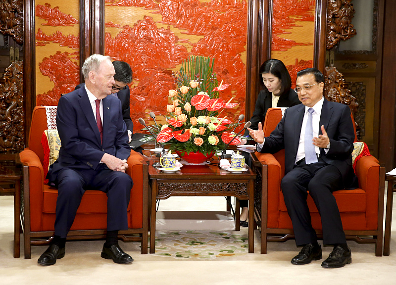国务院总理李克强4月19日下午在中南海紫光阁会见加拿大前总理克雷蒂安。
