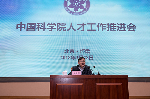 3月28日,中国科学院人才工作推进会议在京召开。中科院党组副书记、副院长侯建国出席会议并讲话,副院长、党组成员张杰宣读了2017年度中科院青年科学家奖获得者名单,侯建国和张杰共同为获奖者颁奖。