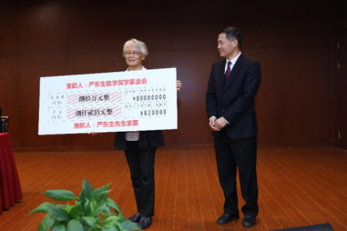 座谈会上还举行了严东生奖助学金捐赠仪式。上海硅酸盐所党委书记李正华代表上海硅酸盐所接受捐赠,并向严东生同志家属代表严燕来颁发捐赠证书。严东生80岁生日之际拿出自己获奖奖金,与上海硅酸盐所等单位和个人设立了上海硅酸盐所严东生助学奖学基金,保障品学兼优的贫困学生顺利完成学业,激励研究生奋发向上,创新进取。到2018年,严东生助学奖学金已设立20载,惠及在学研究生271名,发放助学奖学金合计680800元。严东生同志诞辰100周年之际,其家属向奖学金基金捐赠了80万人民币和8200美元,以支持基金继续奖掖后学。