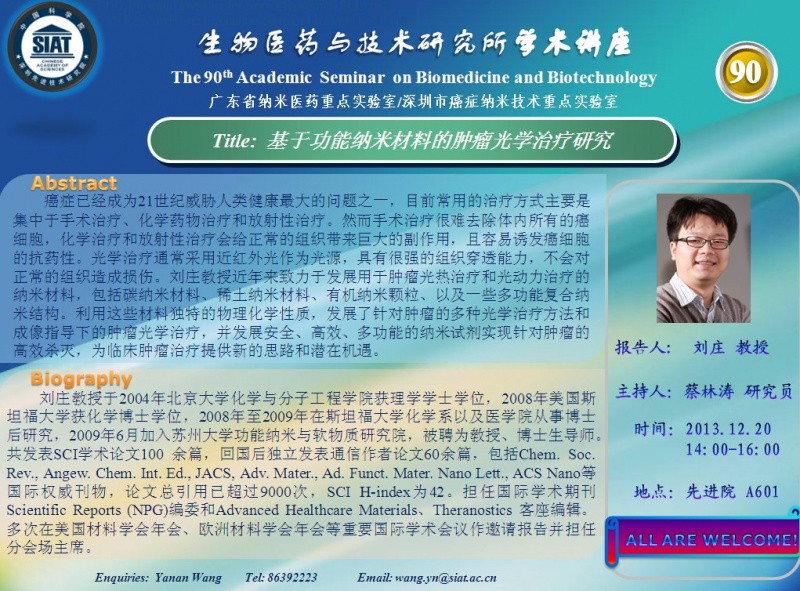 深圳先进院医药所第90期学术讲座预告