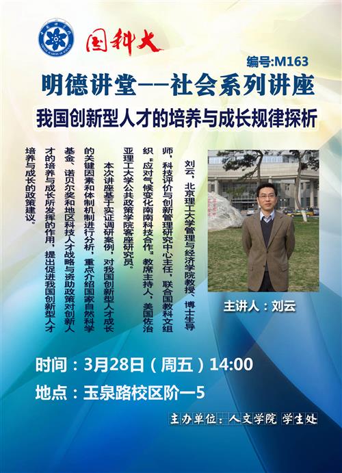 3月27至28日国科大明德讲堂系列讲座预告