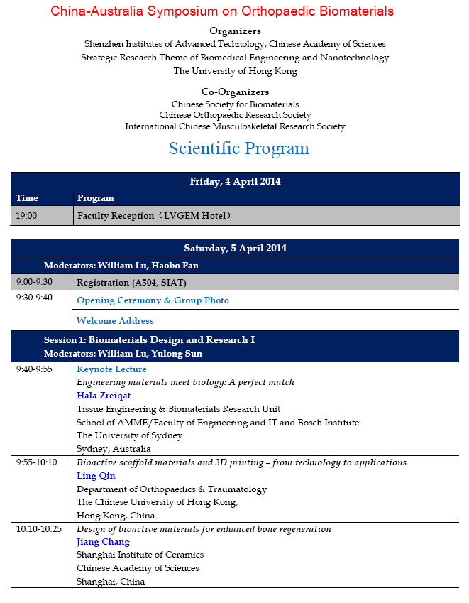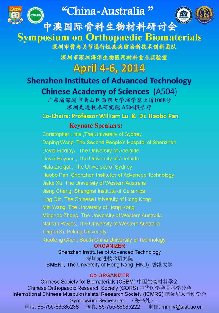 4月4日至6日深圳先进院中澳国际骨科生物材料研讨会预告