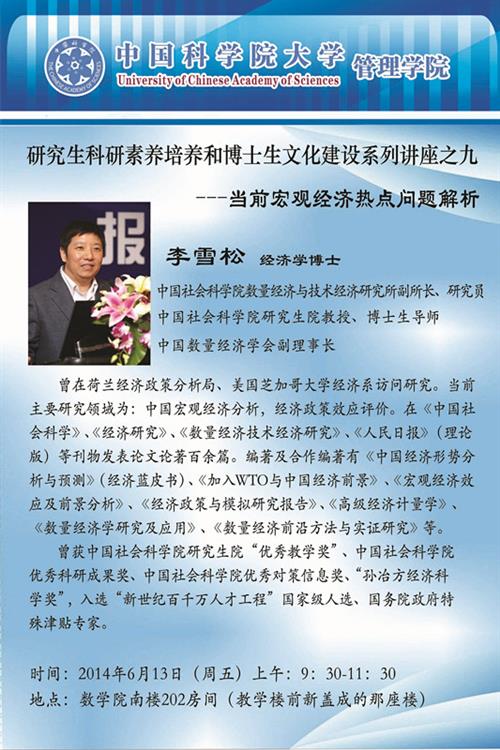 6月13日国科大讲座预告:当前宏观经济热点问题解析