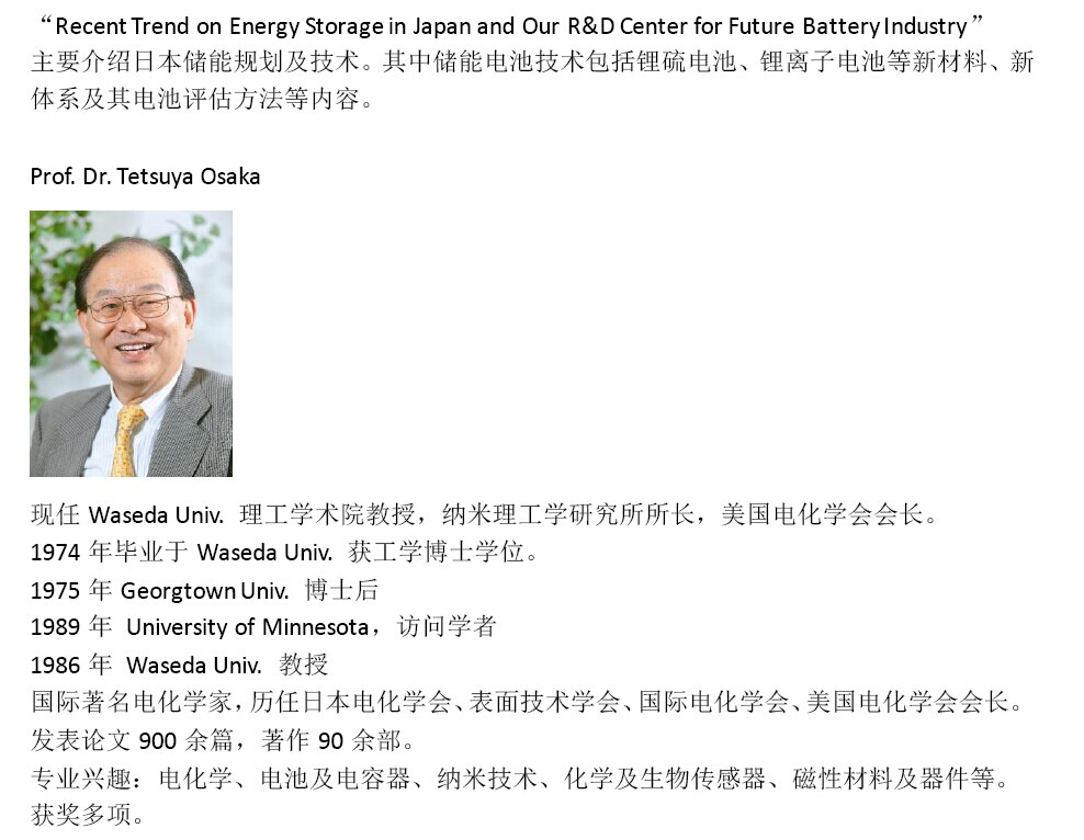 报告题目:Recent Trend on Energy Storage in Japan and Our R&D Center for Future Battery Industry