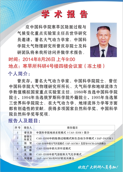 8月26日寒旱所学术报告预告
