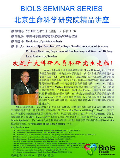 10月20日北京生科院精品讲座第89期预告