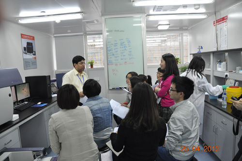 本次研讨会主要由理论报告和流式细胞仪实践操作两部分组成,学员上午参加理论课程学习,下午则上机操作,理论与实践无缝对接。会议邀请了前任国际流式细胞协会主席斯科特·克拉姆(L. Scott Cram)、现任国际临床流式协会主席迈克尔·波罗威茨(Michael J Borowitz)及国际流式协会亚洲区主席克里希那(Awtar Krishan)等在内的数十位国际流式细胞学术界著名专家做了关于多维细胞周期、细胞凋亡及染色体分选等各种流式细胞技术的精彩演讲,赢得了学员们的阵阵掌声。他们将先进的流式细胞学技术与形象的图像表达相结合,使学员从理论上对流式细胞学有了更为深刻的理解和认识。上机实践操作部分由上海巴斯所及健康所流式细胞技术平台负责人配合来自国外的专家共同带教。国外专家是来自美国洛斯阿拉莫斯国家实验室(Los Alamos National Laboratory)、斯克里普斯研究所(Scripps Research Institute)、国家癌症研究所(NCI)、约翰斯·霍普金斯大学(Johns Hopkins University)、华盛顿大学(University of Washington),法国居里研究所(Curie Institute)及澳大利亚昆士兰脑研究所(Queensland Brain Institute)等著名研究机构的流式细胞技术平台负责人,他们和学员们一起进行细胞分选、肿瘤干细胞分选、白血病临床监控及多色流式细胞分析术等流式细胞技术的实际操作。27日下午,会议在上海巴斯德研究所会议室颁发培训证书仪式后圆满结束。