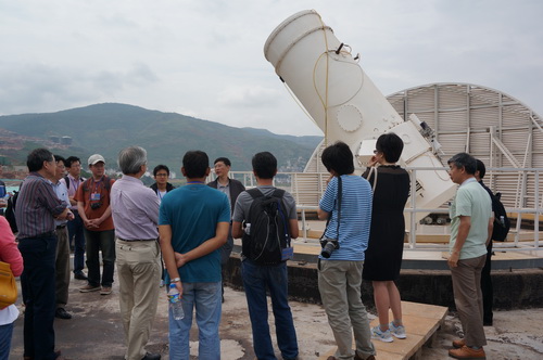 与会专家考察参观了云台抚仙湖观测站,这里是亚洲最大的地面太阳观测基地, 图中是一米太阳望远镜。