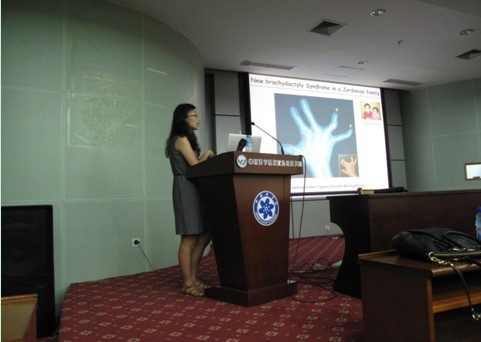 首先,田静博士向大家作了题为Mechanisms of Digit Formation: Rare Human Malformation Syndromes Tell the story 的学术报告。报告中,田静博士介绍了人类功能基因经历自然突变后导致人类稀有遗传病,并通过基因测序等技术筛选疾病相关的功能基因。接下来介绍了人类指(趾)形成的机制及与此相关的一种分子疾病——短指(趾)病,通过指(趾)畸形的信号网络分析出该病属于一种常染色体隐性遗传病,由CHsy1基因的移码突变造成。为进一步分析CHsy1基因的功能,将斑马鱼和小鼠作为研究模型,敲除CHsy1基因后可造成鱼骨骼损害及小鼠尾巴扭曲,并推测出该基因与人类眼睛形态有关,其研究结果对于揭示该遗传疾病的致病机理具有重要的理论价值。