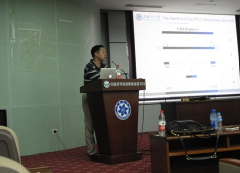随后,赵小东博士为大家作了Integrative analysis of genetic and epigenetic regulation in embryonic stem cells 的学术报告。赵博士首先向大家介绍了人类基因组的研究现状及后基因组时代的研究蓝图。随后介绍了一种PET(Pair-End-diTag)测序方法,通过该方法测定转录组及鉴定融合转录组,并将该技术应用于基因芯片分析,寻找全部基因组图谱中转录因子的结合位点。接下来从胚胎干细胞方面进行遗传和表观遗传学调控整体分析。借助于PET芯片分析胚胎干细胞基因,对分化与未分化干细胞间染色质进行比对,揭示基因修饰对干细胞的影响,并结合表观学和转录谱的关系说明表观遗传修饰对蛋白代谢、生物合成及干细胞功能的影响。