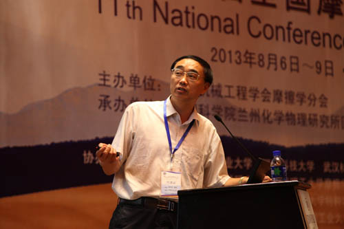 摩擦学分会副理事长兼总干事李健研究员主持大会开幕式,摩擦学分会主任委员刘维民研究员致开幕词,张嗣伟教授和薛群基院士代表摩擦学老前辈分别致辞,兰州化物所所长夏春谷研究员致欢迎辞。大会邀请了机械学设计及理论、摩擦学专家谢友柏院士,清华大学摩擦学国家重点实验室主任雒建斌院士、中国矿业大学葛世荣教授、兰州化物所固体润滑国家重点实验室主任刘维民研究员等4位国内摩擦学领域中的知名学者分别作了题为“分布式资源环境下的摩擦学设计”、“纳米制造中的摩擦学研究”、“生物摩擦学的科学内涵与关键问题”、“航天润滑材料与技术研究”的大会主旨报告。还邀请了武汉理工大学严新平教授、西安交通大学靳忠民教授、西南交通大学周仲荣教授、广州机械科学研究院贺石中研究员、武汉材料保护研究所李健研究员、哈尔滨工业大学王黎钦教授、清华大学机械工程学院孟永钢教授、大连理工大学雷明凯教授、河南科技大学张永振教授、华盛顿大学 S. J. Shaffer博士作了大会特邀报告。