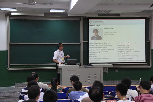 2013年,中国激光杂志社分别联合美国光学学会(OSA)和英国剑桥大学出版社(CUP)创办了Photonics Research (PR)和High Power Laser Science and Engineering(HPLaser)两本英文新刊。为促进英文刊的发展,17日上午杂志社在国防科技大学光电学院举办了英文期刊编委专家座谈会,与会专家就如何促进三本英文期刊的共同发展等议题展开了深入探讨。此外,英文编辑部主任王晓峰在“激光物理”分会场的报告中详细介绍了HPlaser和PR的定位与特色。