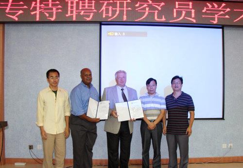 为两位教授颁发外专特聘研究员证书