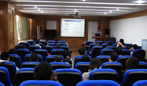 张东风的报告分两部分进行:第一部分介绍了MEMS技术在微纳尺度上的材料拉伸特性的研究。微长度量和微力的准确测量是技术难点。他介绍了两种基于MEMS技术的设计方案,并对重要技术难点的特殊处理和工艺进行了详细阐述。第二部分介绍了MEMS技术在无线通讯领域的应用。现在高端手机上均装配了大量的MEMS器件,其中FBAR(Film Bulk Acoustic Resonator)滤波器就是其中重要的一类。安华高科技公司采用BAW(Bulk Surface Acoustic Wave)技术制作的FBAR滤波器在市场上占有率高达60%。他介绍了BAW技术与SAW(Surface Acoustic Wave)技术的区别,并就FBAR器件设计与制造过程中的要点难点进行了详细阐述。整场报告持续了两个小时,张东风精彩的报告引起了在场科研人员的广泛兴趣,他们就各自感兴趣的内容与张东风进行了深入交流。