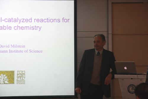 10月16日,以色列魏茨曼科学研究所David Milstein教授应邀访问中国科学院兰州化学物理研究所,期间做了题为Discovery of Catalytic Reactions for Sustainable Chemistry 的学术报告。