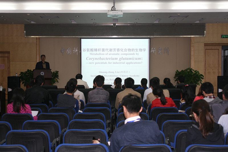 10月25日,中国科学院微生物研究所所长刘双江研究员应邀出席中科院青岛能源所“生物能源与过程高端论坛”,并作了题为“谷氨酸棒杆菌代谢芳香化合物的生物学”的学术报告。研究所所长刘会洲研究员出席报告会,并为刘双江研究员颁发论坛奖牌。