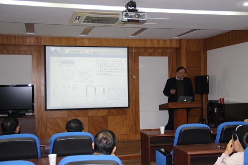 朱俊杰的主要研究方向为纳米生物分析化学,包括功能纳米材料的制备与表征、生物电化学和纳米电化学、纳米材料的光学分析、纳米材料的生物应用等。报告会上,朱俊杰就其近期在量子点的制备、组装、功能化和电化学生物传感等方面的最新研究进展作了精彩报告。报告主要包括以下三个方面:不同粒径、不同颜色石墨烯量子点的制备及其生物应用;复合量子点(如CdSeTe@ZnS-SiO2)的制备,解决了量子点的细胞毒性问题;量子点在芯片中的应用。报告会受到在场人员的一致好评,大家就感兴趣的问题与朱俊杰进行了现场交流。