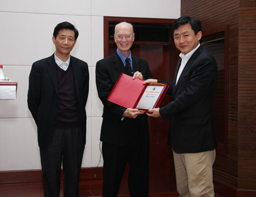 11月13日,美国斯克利普斯研究所(The Scripps Research Institute) 化学系主任Dale L. Boger教授来上海有机化学研究所访问并作汪猷科学讲座,所学术委员会主任林国强院士主持了讲座活动。上海有机所所长丁奎岭向Boger教授颁发了汪猷科学讲座纪念牌。