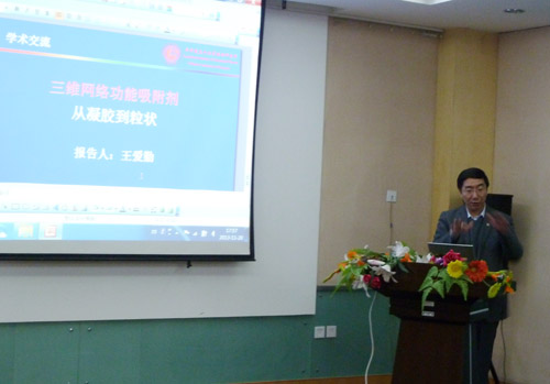 访问期间,王爱勤研究员作了题为“三维网络功能吸附剂:从凝胶到粒状”的学术报告,系统介绍了他所带领的科研团队在三维网络功能吸附剂材料设计、开发及应用方面所取得的成果,以及如何从实验室研究走向应用。报告会后,与新疆理化所的相关科研人员进行了讨论和交流,与大家分享了他在环境材料产业化以及凹凸棒黏土高附加值产品开发及资源综合利用方面所取得成绩和经验。