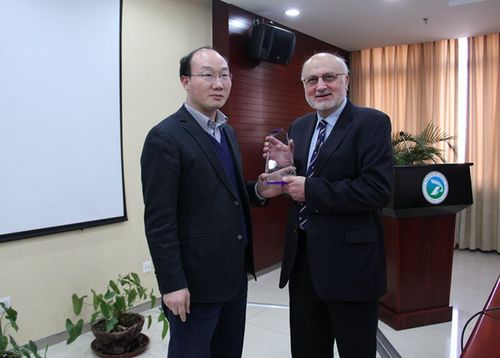 在学术报告中,Demopoulos教授阐述了利用溶液结晶的方法固定砷的研究,并且结合硅酸盐等材料制成了壳核结构;另外,对太阳能电池材料做了介绍,通过四氯化钛水解的方法成功制备了纳米二氧化钛,并实现了从间歇生产到连续生产的转变。李建强处长、杨传芳研究员和张光晋研究员等人与Demopoulos教授进行了现场交流,会场气氛十分热烈。学术报告后,张锁江代表研究所向其表示感谢并赠送纪念品。
