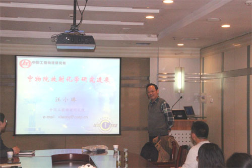 汪小琳作了题为《中物院放射化学研究进展》的学术报告,介绍了中国工程物理研究院的研究内容和我国核物理的发展历程,重点介绍了放射化学的基本知识,以及放射化学在各领域中的研究进展及应用,并对放射化学领域中包含的科学问题展开了详细论述。精彩生动的报告引起与会者的强烈共鸣,会后,大家就感兴趣的研究内容进行了深入交流。