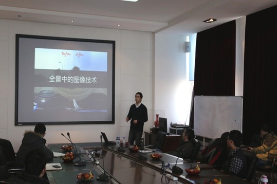 郎咸朋在报告中首先从团购、打车这些身边的小事讲起,通俗易懂地讲述了基于位置的服务(LBS)给我们日常生活带来的巨大便利,吸引了听众的浓厚兴趣。随后,对百度LBS重点产品“百度全景”的研发过程进行了详细介绍,使与会者了解了“数据采集—数据制作—发布上线”的全流程,尤其针对全景中的图像技术,分享了在图像增强、隐私检测、涉密去除、图像压缩等方面的研究开发心得。最后,与大家一起讨论了图像技术未来在LBS和百度全景中的应用前景,提出了许多实用价值与学术价值并重的研究方向。报告深入浅出,既让与会人员了解到图像技术在改变我们生活方面的实际应用,又让研究人员在开发图像技术产品方面受到深刻启发。会场气氛热烈,提问踊跃。报告结束后,与会人员与郎咸朋就三维街景、地图定位、二维码标识、工作实习等诸多感兴趣的问题进行了充分交流。