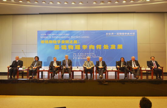 此次论坛由菲尔兹奖获得者、清华大学教授丘成桐主持。诺贝尔物理奖获得者David Gross、诺贝尔物理奖获得者Gerard’t Hooft、菲尔兹奖和基础物理学奖获得者Edward Witten、基础物理学奖获得者Nima Arkani-Hamed、基础物理学奖获得者Joseph Incandela、狄拉克奖和樱井奖获得者Luciano Maiani、日本东京大学卡弗里宇宙物理学与数学研究所所长Hitoshi Murayama、潘诺夫斯基实验粒子物理学奖获得者王贻芳等八位世界一流的物理学家作为嘉宾参加论坛,谈了对基础物理学的未来发展的看法。