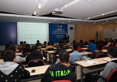 26日上午,Clary在生物楼学术报告厅作了题为Quantum Dynamics of Chemical Reactions 的学术报告,副所长杨学明主持报告会,并为Clary颁发了“中国科学院爱因斯坦讲席教授”证书,所内100余名科研人员参会。报告中,Clary从“What is the Quantum Dynamics”作为开场白介绍了他一直致力研究的科学工作,着重介绍了他新近发展的减维量子分子动力学理论方法,此方法可以预测包含氢原子的一系列复杂分子反应的速率研究。他在报告中评价该所去年在Science上发表的振动激发下F+HD反应中的共振现象的研究工作为“state of the art”。报告结束后,与会人员就感兴趣的学术问题与Clary进行了讨论。