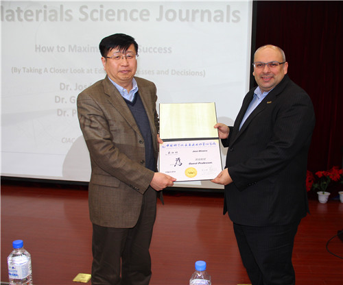 在报告会上,来自全球历史最悠久、最知名的学术出版商之一Wiley集团的三位教授被聘为“中国科学院长春应用化学研究所客座教授”,长春应化所所长安立佳研究员为他们颁发了聘任证书。