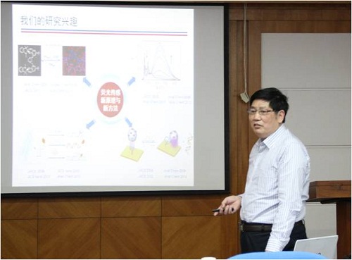 在报告中,杨荣华对新型荧光信号产生与增强的原理、应用等角度的相关科研问题发表了精辟、独到的见解,讲解生动简洁,还就如何提高和端正科学研究的态度和方法等方面与到场的研究人员和学生交流了经验。