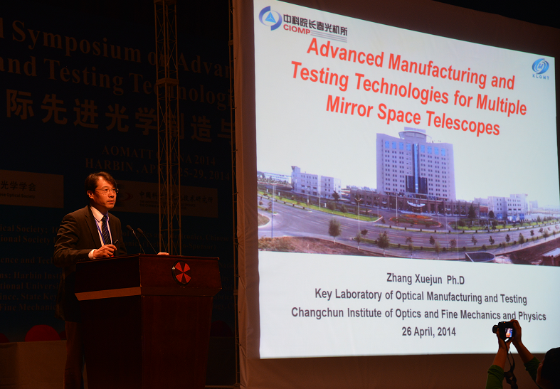 第七届国际先进光学制造与检测学术会议(The 7th SPIE International Symposium on Advanced Optical Manufacturing and Testing Technologies(AOMATT2014))于4月26至28日在哈尔滨举行,中国科学院长春光学精密机械与物理研究所作为协办单位受邀参会。该所副所长张学军研究员、白雨虹研究员应大会组织委员会邀请作为大会主席团成员参会并作报告。