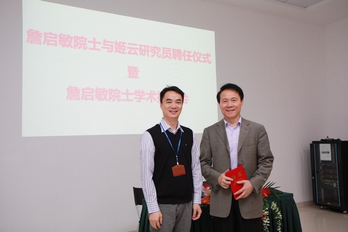 5月13日上午,中国医学科学院副院长、中国协和医学院副校长詹启敏院士与苏州生物医药创新中心执行主任姬云研究员聘任仪式暨詹启敏院士学术报告会在中国科学院苏州纳米技术与纳米仿生研究所D111会议室举行。会议由纳米生化平台主任李炯研究员召集并主持,苏州纳米所副所长陈立桅出席聘任仪式并向詹启敏与姬云颁发了中科院苏州纳米所客座研究员聘书。