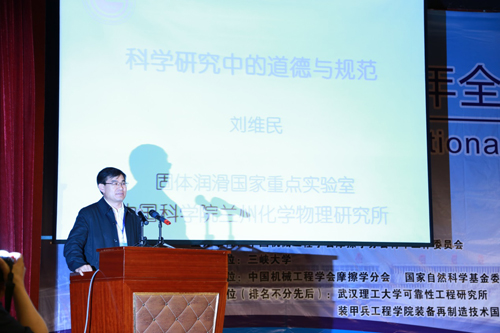 刘维民院士开幕式致辞并做了题为“科学研究中的道德与规范”的大会主题报告