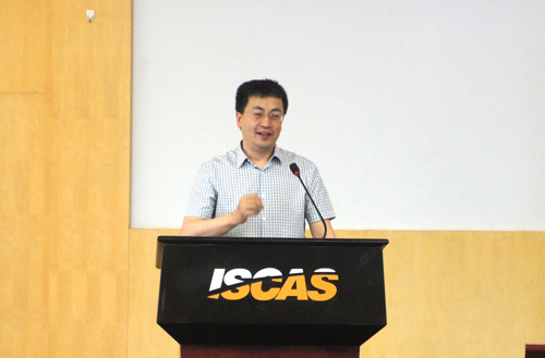 为提升中国科学院软件研究所创新文化建设,激发广大科研人员持续创新活力,拓展科技创新思路,5月27日下午,软件所创新文化论坛2014系列讲座首场报告会在5号楼四层大报告厅举行。报告会邀请到全国劳动模范、国奥集团董事长张敬东来所做题为《资源共享 跨界运营》的专题报告,报告会由软件所所长李明树主持。国奥集团党委书记、执行副总裁龙愉,执行副总裁张安平、曹卫东,国奥京西分公司总经理于晓红,总裁助理何巍,国奥(北京)文化产业公司总经理王大庆等一行随行。软件所党委书记、副所长李玉成,副所长徐帆江出席会议,近200名职工和研究生聆听了报告。