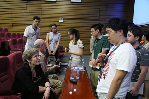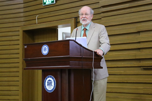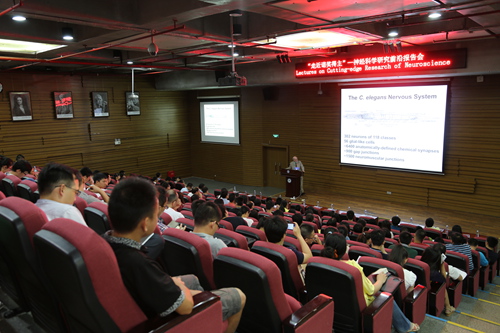 随后举行的学术报告会由深圳先进院院长助理毕亚雷主持。深圳先进院院长樊建平致开场欢迎辞并介绍了两位教授的研究领域与学术成就。Horvitz教授围绕以C. elegant为模式动物,针对细胞分裂、凋亡的分子机制以及神经退行性疾病的分子机理方面的最新进展做了题为Programmed Cell Death in Development and Disease 的学术报告;Martha Constantine-Paton教授围绕以小鼠为研究模型,针对神经发育、正常与疾病状态下的突触可塑性做了题为 A Role for LTD in Neural Development and Behavior 的学术报告,细致介绍突触可塑性的分子机理及其异常变异对行为的影响。深圳先进院、香港和深圳大学城的200多名科研人员及研究生参加了报告会,并与两位教授进行了积极的互动和深入的探讨。