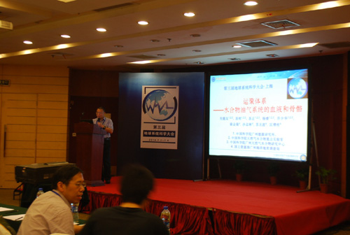 本次大会设置了“生物演变与环境”、“海洋与气候”、“生物地球化学循环”、“深部过程与行星循环”、“深海资源与技术”、“地球系统动力学”及“地球系统科学与资源环境问题”七大主题,下设有19个专题。这些专题的设置采用科学家自由申请、大会学术委员会综合确定的原则,每个专题由2至3位不同学科的科学家召集。吴能友、陈多福研究员共同召集并主持“专题十六:海底与海水的物质交换”。针对19个专题提交了583份论文摘要,共有250个口头专题报告、333个展板报告。大会还安排了两场大会报告,由8位各领域的杰出专家就地球科学最新成就进行综述,内容涵盖了从青藏高原环境到南海大洋钻探、从气候变化到行星科学等各方面的最新进展;以及一场信息发布会,对国内外地球科学4项重大计划的构想和进展进行介绍。