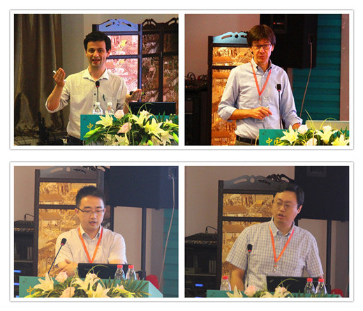 大会邀请了多名国内外著名专家就计算材料科学领域的前沿问题做了精彩的报告。来自基因遗传算法(Genetic Algorithm)研究的两大著名团队——美国能源部Ames实验室的王才壮教授(AdaptiveGA算法)和美国纽约州立大学石溪分校的Artem R. Oganov教授(USPEX软件)分别介绍了各自研究的最新进展。来自美国能源部国家再生能源实验室的魏苏淮教授、复旦大学的刘智攀教授、大连理工大学的赵纪军教授等,对氧化物能源材料设计、随机路径搜索原子结构和反应路径等材料结构预测和优化相关方法和应用做了一系列报告。对于具有丰富物理性质和应用前景的二维材料的研究,美国犹他大学刘锋教授、中国人民大学季威教授、加拿大NanoAcademic Technologies公司刘磊博士、南京航空航天大学郭宇锋教授、中国科学技术大学武晓君教授等深入浅出地介绍了二维有机拓扑绝缘体、黑磷、WSe2和石墨烯相关材料等前沿研究工作。国际理论物理中心的Sandro Scandolo教授、布法罗大学的张培鸿教授、复旦大学的吴骅教授、南方科技大学的石兴强教授在极端环境流体模拟和强关联材料系统等方向的报告吸引了与会者广泛的兴趣。固体所的张永胜研究员和郑小宏研究员也分别作了储氢材料亚稳相结构和GPU加速技术报告。