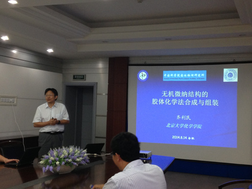 齐利民教授的报告以“无极微纳结构的胶体化学法合成与组装”为题,重点介绍了其在具有特定形貌和构造的胶体粒子以及图案化纳米阵列结构的可控合成、组装及性能研究等方面所取得的一些进展。他主要阐述了以下三方面内容:基于表面活性剂和特殊溶剂的纳米结构合成,包括特殊形貌的金和二氧化钛纳米结构;基于反应性模板的纳米结构合成,得到了各种维度的纳米晶;基于单层胶体晶体模板的纳米阵列结构的制备与组装。此外,对所得到的材料在催化、SERS、生物传感及锂离子电池等方面的应用做了初步探讨。