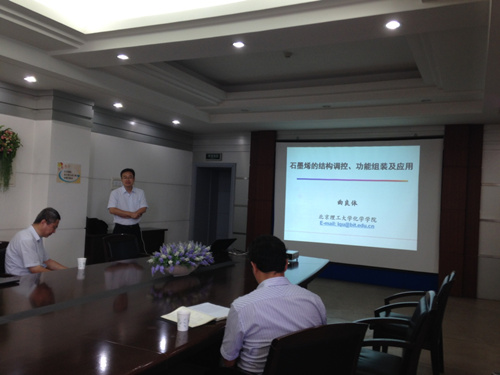 曲良体教授在报告“石墨烯的结构调控、功能组装与应用”中,介绍了其小组在对各个维度的石墨烯基材料进行组装、功能化及应用方面取得的进展。通过对石墨烯进行剪裁、组装,以模板法和自组装的方式实现了从零维量子点到一维纳米管、微纤维,二维石墨烯和三维石墨烯网络的构建,并将其与其它功能体复合,制备得到了多种维度的石墨烯功能材料,利用这些材料的独特性能,将其应用于聚合物太阳能电池、催化、光催化等方面,表现出重要的应用价值。