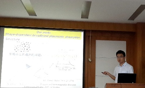 李炫华从金属等离子体和基于双等离子体效应制备的太阳能电池两个方面做了精彩的学术报告。基于双等离子体效应制备的太阳能电池充分利用了纳米颗粒和金属光栅的协同作用,其中纳米颗粒可以提高载流子的迁移速率,金属光栅可以提高载流子的收集效率,从而进一步增强光的吸收。基于这种双等离子之间的协同作用,李炫华设计的双等离子体增强太阳能电池,成就了当时最高的器件转化效率(9.1%)。报告结束后,他送上了对智能所老师们昔日辛勤栽培的深深敬意,并耐心解答了现场老师和同学们所提的问题,对在场的师妹、师弟给出了诸多建议和勉励。