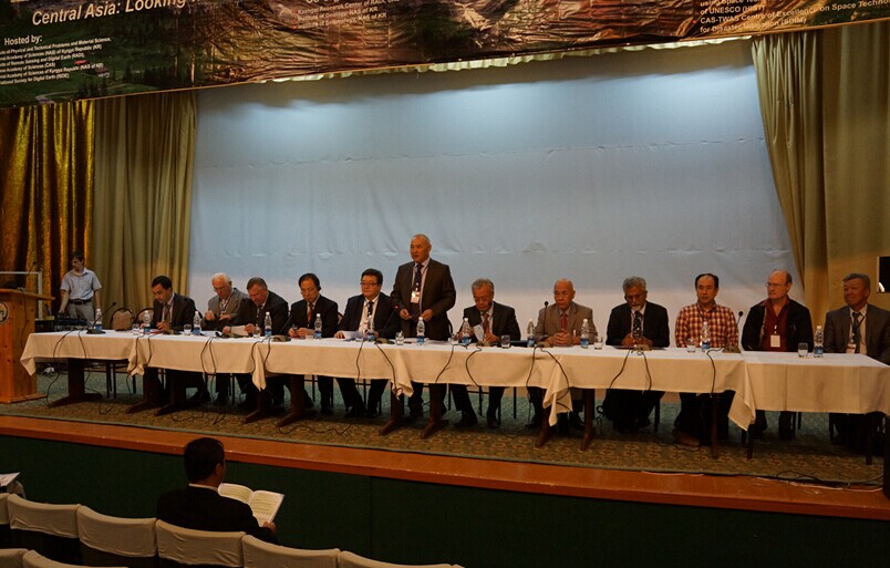 随后,吉尔吉斯斯坦科学院院长Abdygany Erkebaev院士、吉尔吉斯斯坦农业与粮食部部长T.A.Aidaraliev先生、吉尔吉斯斯坦教育与科技部部长K.J.Sydykov教授、吉尔吉斯斯坦地质与矿产资源局局长D. T. Zilaliev、俄罗斯空间局局长Sergei Saveliev先生、白俄罗斯国家科学院院长Peter Vityaz院士、哈萨克斯坦国家科学院Halel Bespaev院士等相继致辞,强调空间科学技术近年取得的快速发展及其在农业、减灾、全球变化、矿产资源方面的广泛应用,阐述了中亚国家和地区对空间技术的迫切需求,表达了希望与中国开展合作的强烈愿望。他们还对中科院遥感地球所搭建的ISEO会议平台以及中科院在该合作中发挥的引领和实质作用给予充分肯定和赞赏。