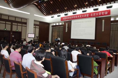 9月26日下午,由中国科学院自然科学史研究所主办的中国科学院科学技术史大讲堂“走进校园”系列·北京大学专场暨第三十五讲、第三十六讲在北京大学人文学苑主学术报告厅成功举行。这是继清华大学专场之后的科技史大讲堂“走进校园”系列的第二站。讲座由中国科学技术史学会副理事长、北京大学医学人文研究院院长张大庆教授主持,中国科学院自然科学史研究所刘益东研究员、北京大学哲学系暨科学与社会研究中心周程教授应邀作学术报告,科学史所党委书记袁萍应邀出席了本场讲座。两场报告的题目分别为“成也科技、败也科技——粗放式创新与致毁知识增长导致美国及美国模式的崩溃”、“从电子技术的研发竞争看日本产业的创新困境”。本次讲座引起北京高校与科研院所师生的兴趣,逾百名来自科学史所、北京大学、清华大学、中国科学院大学、北京大学医学部、中国人民大学、中国农业大学、中央财经大学、中科院软件研究所、中船重工714所、中科院遥感与数字地球研究所等科研单位和高校的学生和学者参加了本次活动。