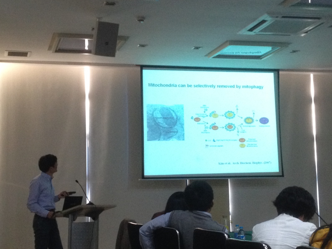 线粒体是细胞的能量工厂,其质量和功能直接影响线粒体自身以及细胞的命运。陈佺首先介绍了研究团队发现的小分子化合物S3,该化合物通过抑制deubiquitinase USP30(可加速融合蛋白Mfn1、Mfn2的降解),促进线粒体的融合,恢复应激条件下线粒体的功能,抑制肿瘤细胞的生长。接着陈佺重点介绍了由该研究团队首先发现的线粒体外膜蛋白FUNDC1。应激条件下,PGAM5、CK2调节FUNDC1的功能,影响线粒体自噬(mitophagy),保证线粒体的质量。最后,陈佺和与会者对“线粒体功能异常在神经系统疾病以及代谢性疾病(如肿瘤、糖尿病等)中扮演的角色”展开了激烈的讨论。