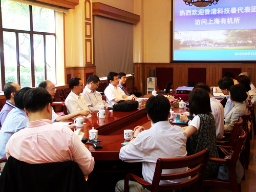 9月16日下午,由香港创新科技署署长王荣珍女士带队的十一人代表团访问了中科院上海有机化学研究所,有机所所长丁奎岭、副所长马大为、侯雪龙研究员、刘文研究员和游书力研究员参加了接待活动。