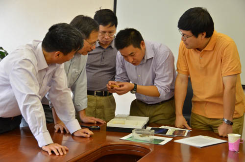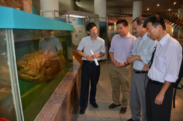 董军社代表古脊椎所对黄志光一行的来访表示欢迎,他介绍了古脊椎所近年来在古生物学科研及科普领域取得的新成果,并对双方在古生物科考、科研和科普宣传等方面开展深入合作,代表研究所表示大力支持。黄志光介绍了香港渔农自然护理署在建设香港国家地质公园、湿地保育、自然生态环境保护等方面的重要工作,希望古脊椎所全力支持香港国家地质公园的建设,尤其是在最能体现生命厚度的古生物学领域给予最权威的指导和帮助,并诚挚邀请古脊椎所相关专家赴港开办科学讲座,宣传进化理论和科学知识,以及对香港自然保护区开展古生物野外考察。之后,黄志光一行饶有兴致地观看了古脊椎所馆藏的在香港地区发现的鱼类化石,包括杨氏香港鱼等珍贵标本,并在王原馆长、盖志琨博士的陪同下参观了中国古动物馆。