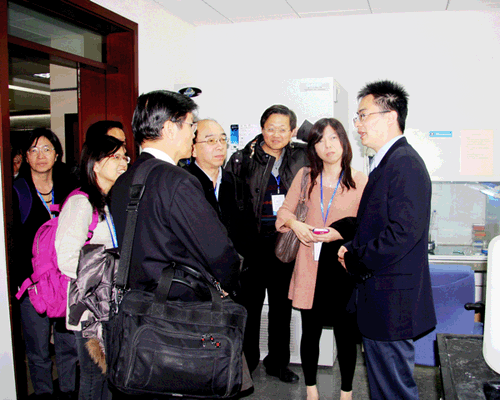 翁启惠表示,他早在1999年就被上海有机所聘为名誉教授,对有机所有着深厚的感情,也希望本次率团来访能促进双方更深层的合作与交流。接着双方就未来合作可能、学术发展动态、青年人才培养、与工业界的联系合作、科研经费来源等多个方面进行了探讨与交流。之后代表团参观了生命有机化学重点实验室,对现代化设施、科学家的活跃留下了良好的印象,加深了对有机所在中国有机化学领域突出地位的了解。参加接待的还有来自生命有机、分析化学室的十几位研究员。